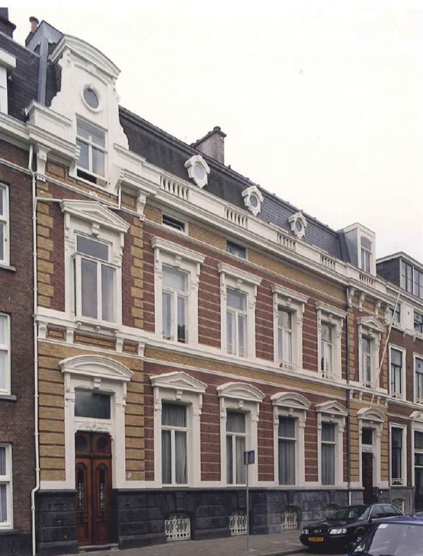 Rechterhelft van dubbel herenhuis uit ca. 1875, gebouwd in opdracht van Antonie Hendrik Drijfhout van Hooff, waarschijnlijk door aannemer F.H. van Malsen, in een eclectische bouwstijl.