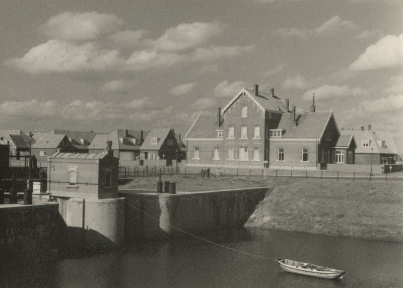 Vrijstaande gebouw met dienstwoningen uit circa 1880 behorend bij de voormalige zeesluis in het Afvoerkanaal in een voor die periode kenmerkende stijl voor Waterstaatsobjecten.