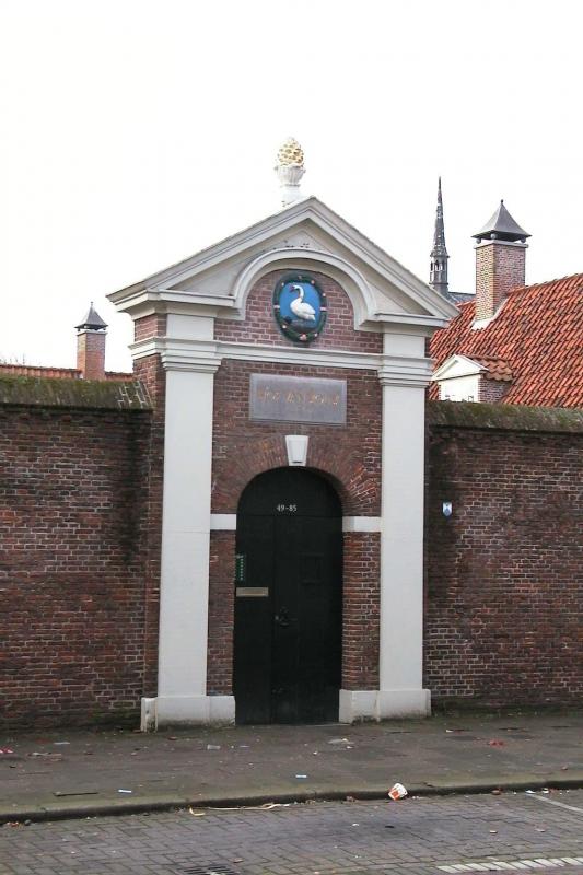 Hofje van Cornelia van Wouw, gebouwd in 1647, 16 woningen om een binnenplaats, van de straat gescheiden door een muur tussen twee hoger opgetrokken hoekpanden, in het inwendige nog verscheidene onderdelen uit de bouwtijd.