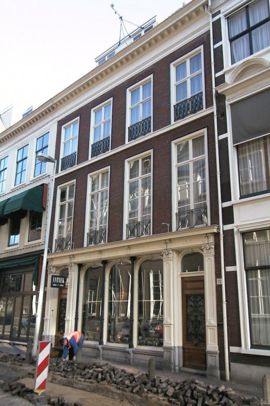 Pand, van oorsprong uit de 17de of 18de eeuw, ter breedte van vier vensterassen en bestaande uit drie bouwlagen met dwars schilddak waarin een dakkapel. De harmonische lijstgevel dateert in de huidige vorm uit het derde kwart van de 19de eeuw. Tussen de verdiepingen een geprofileerde waterlijst; onder de krachtig geprofileerde kroonlijst eenvoudige consoles. De vensters bezitten geprofileerde, houten omlijstingen en hebben acht- en zesruits stolpramen, alsmede gietijzeren raamhekjes. Rijk gedetailleerde winkelpui met gecanneleerde pilasters, voorzien van Corinthische kapitelen, gietijzeren zuiltjes en een kroonlijst, gedragen door paarsgewijs geplaatste voluutconsoles met bladmotieven.