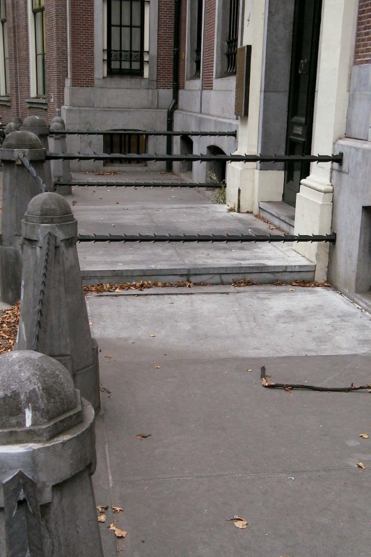 Pand met bakstenen gevel in Lod. XIVstijl, 3 bouwlagen op souterrain, in totaal 9 vensterassen breed met brede kroonlijst met tryglieven in het fries. In oorsprong rechter gedeelte 17de eeuws. Rond 1935 is nr. 4 en 5 samengevoegd. Daarbij ontstond smalle uitbouw links over de hele hoogte met licht gebogen gevelvlak. Bij de 3de travee rechts vertoond de gevel ook een lichte knik. De monumentale entree met paneeldeur en getoogd bovenlicht met smeedijzeren versiering heeft dubbele pilasteromlijsting.