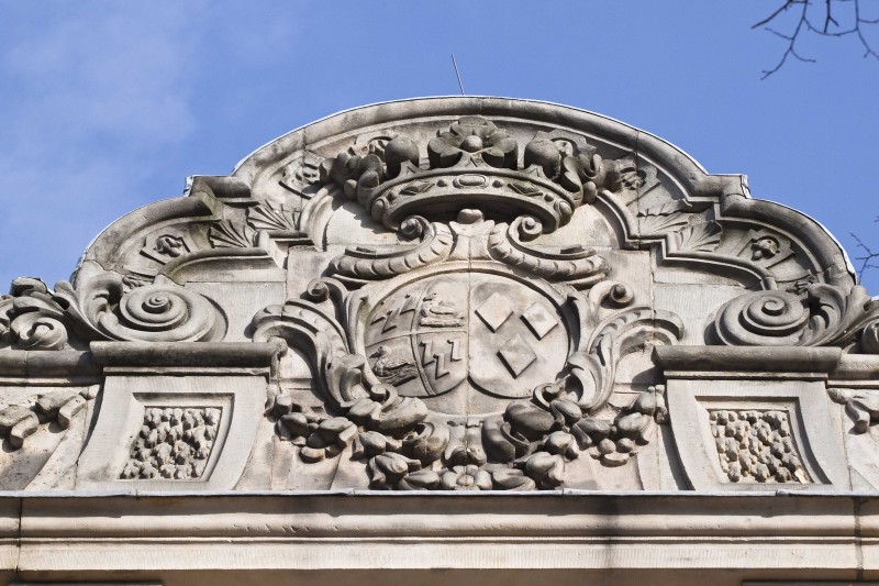 Pand in Lodewijk XIV- stijl welke bestaat uit souterrain, twee hoge bouwlagen en een lagere derde bouwlaag onder kap. De monumentale met zandsteen beklede voorgevel is 7 assen breed, waarvan de middelste drie licht risalerend zijn uitgevoerd. De centraal gesitueerde ingangstravee is rijk geornamenteerd met Lodewijk XIV- motieven. Boven de ingang is een balkon met ijzeren hekwerk. Boven de kroonlijst wordt de gevel beindigd met een natuurstenen open balustrade, in het midden voorzien van een rijk gebeeldhouwd fronton en op de hoeken siervazen. De schuifvensters met kleine roedeverdeling in 18e eeuwse trant zijn bij een 20e eeuwse restauratie aangebracht. In de 19e eeuw waren Empire-vensters geplaatst. Gebouwd naar ontwerp van Daniel Marot in opdracht van Cornelis van Schuylenburch. Felix du Sart had de leiding bij de uitvoering van de bouwwerkzaamheden.