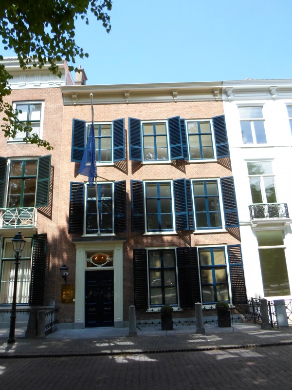 Pand bestaande uit drie bouwlagen onder kap met voorgevel uit de eerste helft van de 18 eeuw. De in schoon metselwerk uitgevoerde voorgevel telt drie vensterassen. Kroonlijst met vier bewerkte consoles. Ingangspartij met classicitische omlijsting bestaande uit pilasters en hoofdgestel. De zes-ruits schuifvensters dateren uit de 19e eeuw.