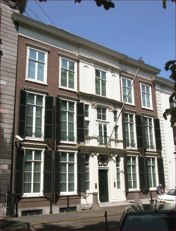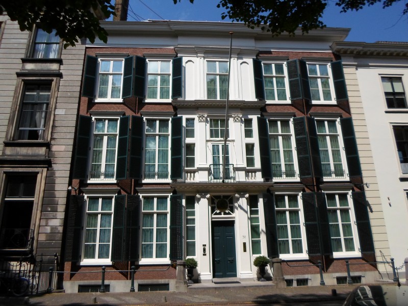 Pand met gave Lodewijk XIV gevel met rechte kroonlijst en hardstenen plint - middentravee met pilasters versierd.