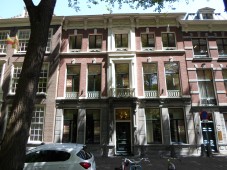 Pand met bakstenen gevel uit de tweede helft van de 19e eeuw met versierde middenpartij en kroonlijst op gesneden consoles.