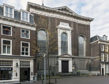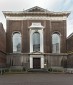 Zaalkerk uit 1759-1761 met een monumentale bakstenen voorgevel. Deze gevel van het een bouwlaag tellende pand heeft een fronton in classicistische geest met drie zeer hoge rondboogvensters met kleine roedeverdeling. De middentravee, die risalerend is uitgevoerd, is rijk bewerkt en wordt beeindigd met een tympaan. Ook de entree in deze as bezit een omlijsting, die wordt afgesloten door een classicistische tympaan. Het zeer hoge basement van de gevel is met natuursteen bekleed.