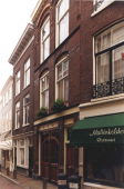 Pand met ingezwenkte halsgevel met aanzetvazen en recht afgedekte top van omstreeks 1700.