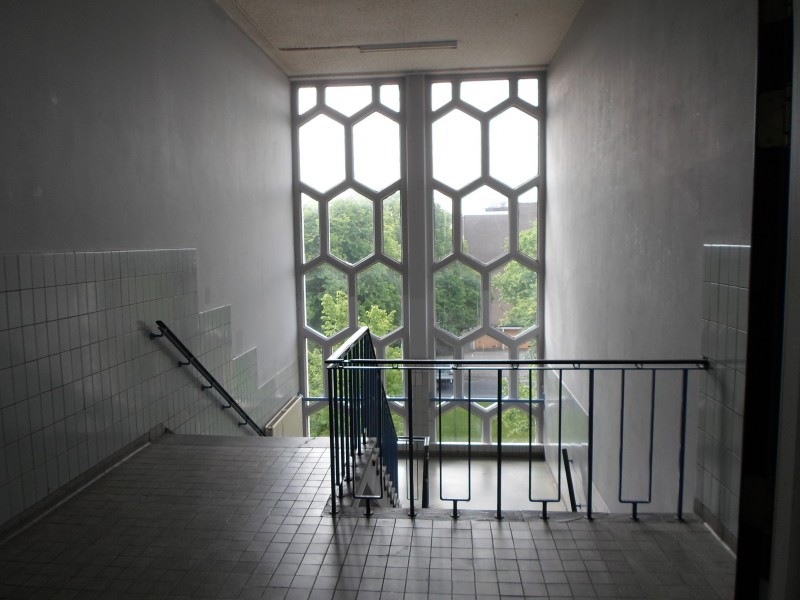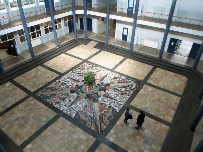 Het vierkante bouwdeel met praktijklokalen bevat lokalen van verschillende grootte in drie lagen rond een vide van 19 bij 19 meter. Deze is aan alle zijden omgeven door 2,50 meter brede galerijen. De vide is voorzien van een opgetild plat dak, waarvan de hoekpunten schuin zijn opgetild. Hierdoor dringt daglicht tot diep in het gebouw. De tussenwanden naar de galerijen en het hekwerk langs de galerijen zijn voor een groot deel transparant gehouden. De centrale hal ligt enkele treden verdiept en bevat een scherf mozaïek van 8 bij 8 meter van Marius de Leeuw voorstellende een windroos. Er is één trappenhuis opgenomen in de lokalenzone aan de Meppelweg, voorzien van een nooduitgang.