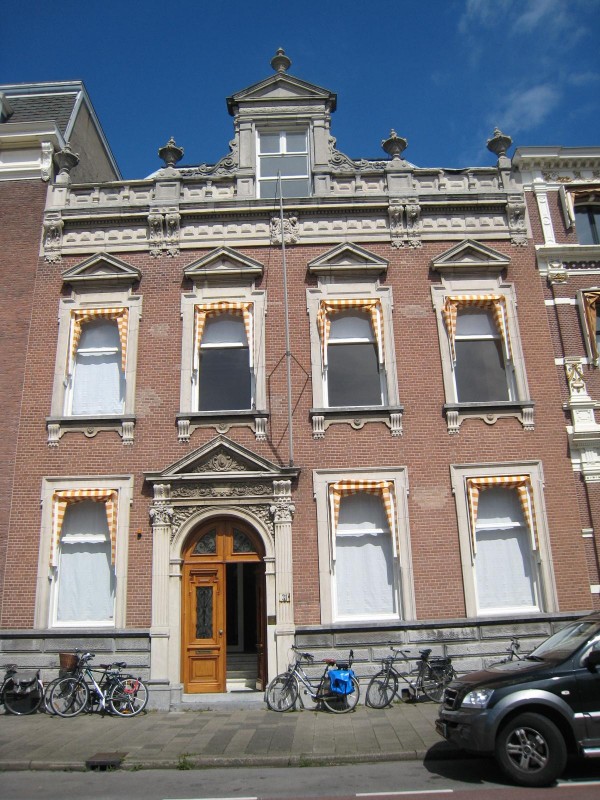 Pand, gedateerd 1887, bestaande uit parterre, verdieping en omlopend schilddak. Architecten: Van Rossem en Vuyck te Amsterdam. Breedte vier vensterassen. Lijstgevel in neorenaissancestijl. Gebosseerde hardstenen plint, rijk gedetailleerde deuromlijsting met gecanneleerde Corinthische pilasters, getoogde deuromlijsting, gebeeldhouwde zwikvullingen, fries met gebeeldhouwd lofwerk en fronton met gebeeldhouwde vulling op consoles.