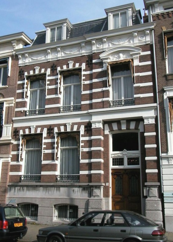 Pand uit 1883, bestaande uit souterrain, belétage, een verdieping en omlopend schilddak waarin twee dakkapellen. Breedte drie vensterassen. Lijstgevel in neorenaissancestijl. Hardstenen bekleding van het souterrain voor het overige baksteen met gepleisterde banden. Geprofileerde lijst tussen belétage en verdieping. Geblokte bogen met versierde sluitstenen boven de vensters. De rechter vensteras behandeld als risaliet. Hierin terugliggende ingangspartij, geflankeerd door gemetselde pilasters met banden. Dubbele deur uit de bouwtijd met bovenlicht. Hierboven vensters met bekronend gebogen fronton. Sierankers; raamhekjes voor de vensters van de verdieping. Houten kroonlijst met consoles en festoenen in het fries.