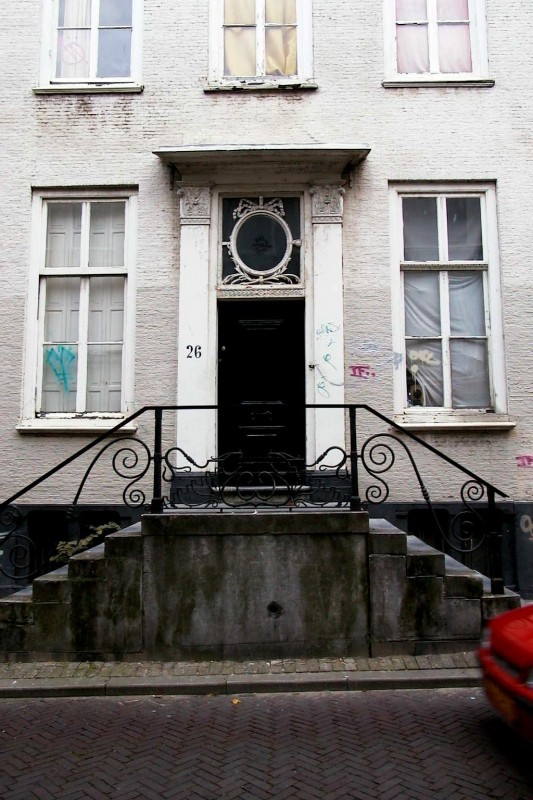 Pand met verdieping onder schilddak gedekt met pannen. De Lod.XVI voorgevel heeft tevens een lage zolderverdieping met 4-ruits vensters en is afgesloten met een brede, geprofileerde kroonlijst. Hardstenen stoep met smeedijzeren hek. Gesneden deuromlijsting. Zesruits schuifvensters. In zijgevel deur met eenvoudige gesneden omlijsting en hardstenen stoeppalen