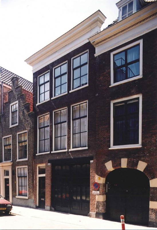 Pand bestaande uit drie bouwlagen onder een schilddak met de nok loodrecht op de rooilijn, drie vensterassen breed. De sobere bakstenen lijstgevel dateert uit het laatste kwart van de 18e eeuw maar gezien de ligging is het pand mogelijk nog van 17e eeuwse oorsprong. De huidige bedrijfsingang is recentelijk aangebracht.