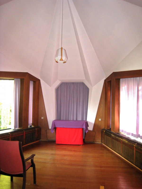 Dit gedeelte vertoont een lichte knik met de rest van het gebouw en bezit een bijna wigvormige plattegrondvorm met een smal balcon aan het uiteinde, waarboven een schuine oplopende luifel is aangebracht, in aansluiting op de kap; voorts een hoekige aanbouw aan de noordzijde waarop een uitgebouwde ingangspartij met stoep aansluit. De vormgeving is verder verwant aan de overige gedeelten van het gebouw, zoals ook blijkt uit de zij-ingang waarvan de deur een afgeschuinde hoek heeft.