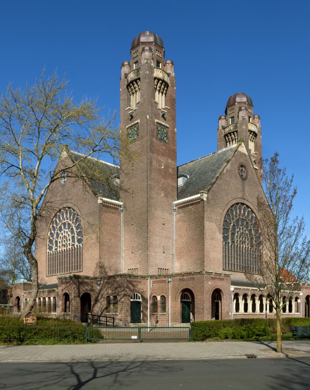 Vrijgelegen protestants kerkgebouw uit 1915-1916 naar ontwerp van W.Ch. Kuijper gebouwd op kruisvormige plattegrond in neo-romaanse stijl met invloeden uit het werk van K.P.C. de Bazel en H.P. Berlage.