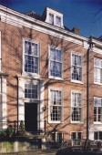 Pand met gevel uit de tweede helft van de 18e eeuw, versierde ingangspartij.