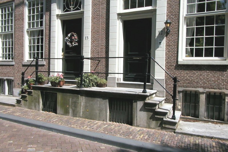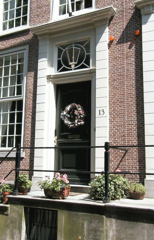 Pand met gevel uit de tweede helft van de 18e eeuw, versierde ingangspartij.