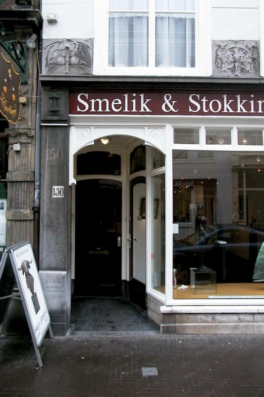 18de-eeuws huis, bestaande uit vier bouwlagen. Breedte: twee vensterassen. Geblokt gepleisterde lijstgevel van 19de-eeuws karakter, waarin vensters met geprofileerde, houten omlijstingen en - in de bovenste twee verdiepingen - vierruitsramen. Winkelpui in Art Nouveau, in de linker penant gesigneerd: "Falkenburg & Co". Boven de puibalk drie gebeeldhouwde gevelstenen met Art Nouveau ornament.