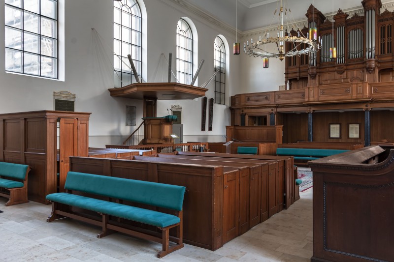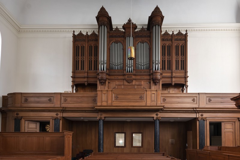 Waalse Kerk. Bakstenen zaalkerk van 1807 met dakruiter en drie ingangsportalen - eiken preekstoel van 1645. Orgel met twee klavieren en vrij Pedaal, in 1885 gemaakt door A.Cavaille-Coll. Klokkenstoel met gelui bestaande uit een klok van een anonieme gieter, 18de eeuw, een klok van G. Wibrants, 1702, diam. 65,6 cm, en een buiten gebruik gestelde klok van F. Simon, 1644, diam. 65 cm