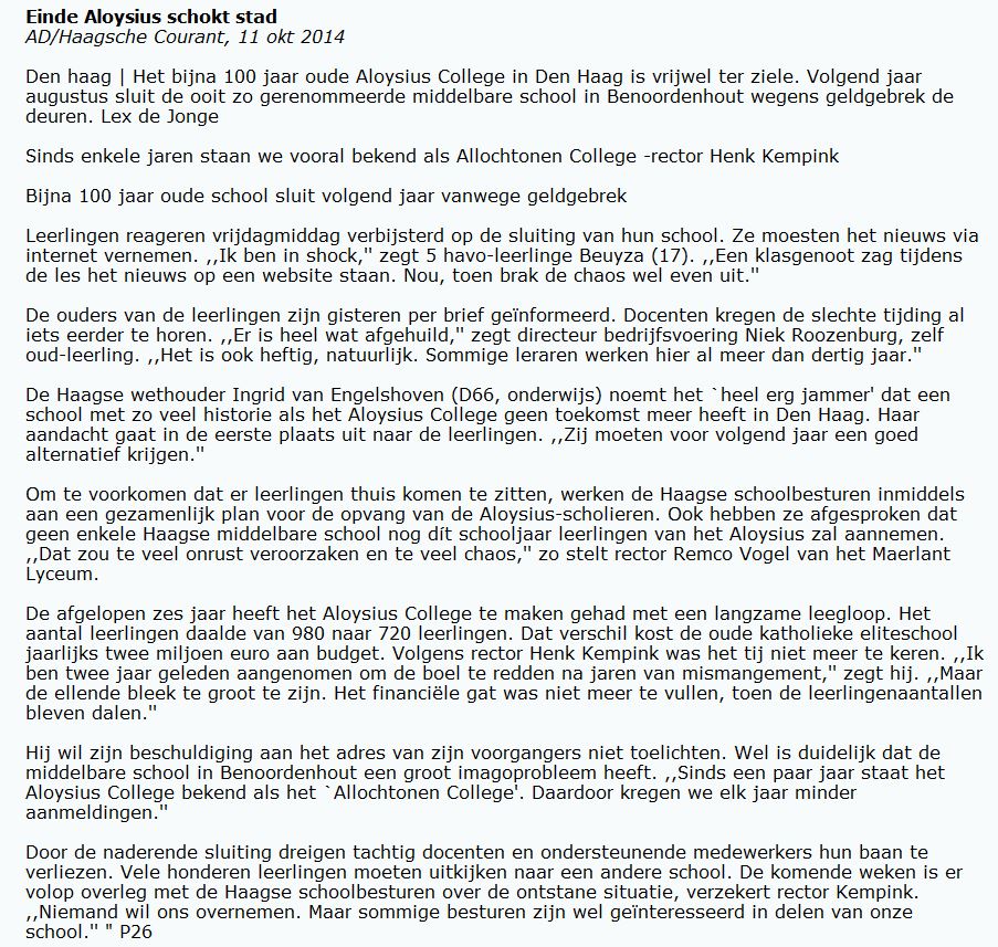 Complex van het in opdracht van het bestuur van de Sint Willebrordusstichting tussen 1922 en 1925 gebouwde Sint Aloysisuscollege naar ontwerp van de architect P.G. Buskens. Het college kenmerkt zich in architectonische zin door de traditionele, zware bouwtrant die toentertijd bij katholieke scholen gebruikelijk was. De diverse bouwdelen, opgetrokken in schoon metselwerk zijn merendeels twee of drie bouwlagen hoog, onder geprononceerde met zwarte pannen gedekte zadeldaken. De oorspronkelijke stalen ramen met roedeverdeling zijn met uitzondering van de voorgevels van het patershuis vervangen door kunststof- en aluminiumkozijnen zonder roeden.