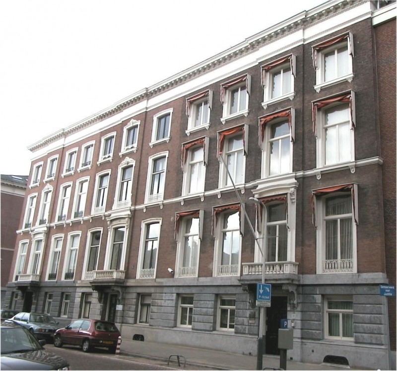 Voormalig herenhuis op rechthoekige plattegrond uit circa 1875 in eclectische stijl ontworpen door de architect J.J. Delia als onderdeel van een ensemble van drie herenhuizen. Omschrijving.