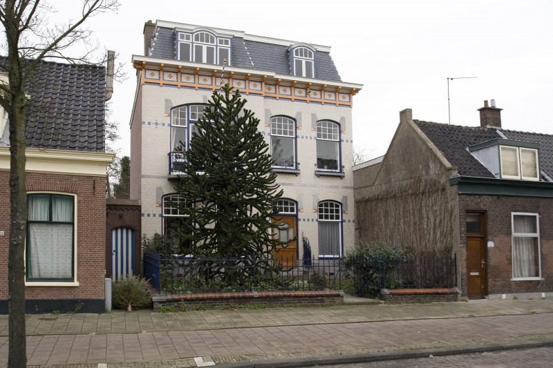 Vrijstaande voormalige tuinderswoning uit 1907, gebouwd in opdracht van tuinder E. Flinterman naar ontwerp van aannemer J. van Rossum in Art Nouveau.