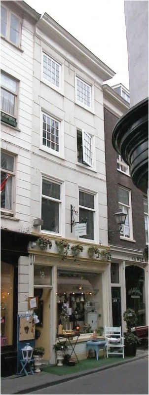 Negentiende eeuws pand van twee vensterassen, bestaande uit parterre en twee verdiepingen met zolderverdieping. Gepleisterde lijstgevel met voegen en schilddak. Winkelpui onder puilijst.