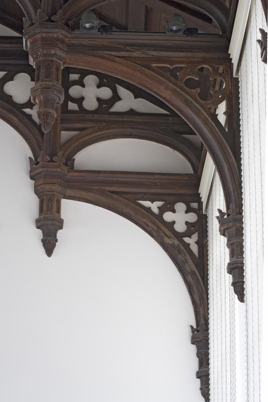 Eenbeukige zaal uit 1840-1842 ontworpen door koning Willem II in op de Engelse Gotiek geinspireerde vormgeving. Het pand is door de aannemers J.E. van Ellinkhuizen en P. Schroot gebouwd achter het in 1817-1820 in Empirestijl verbouwde paleisje aan de Kneuterdijk 20. Het door een zadeldak gedekte gebouw heeft bakstenen muren met steunberen en spitsboogvensters. Deze vensters hadden oorspronkelijk in baksteen uitgevoerde traceringen. Bij de restauratie van 1978-1983 door C. Wegener-Sleeswijk zijn deze traceringen in natuursteen vernieuwd.