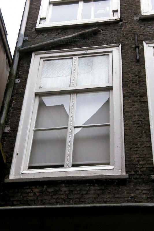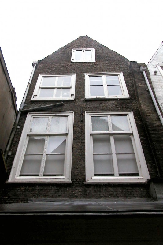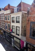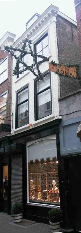 Waarschijnlijk in oorsprong zeventiende eeuws pand met wit gesausde twee-assige lijstgevel en bestaande uit parterre met twee verdiepingen. Winkelpui met kroonlijstje ca. 1900. Vensters onder rollagen; omlijstingen en dorpels 19de eeuws. Kroonlijst op klossen; versieringen met o.a. rozetten in fries (laatste kwart 19de eeuw). Versoberde dakkapel.