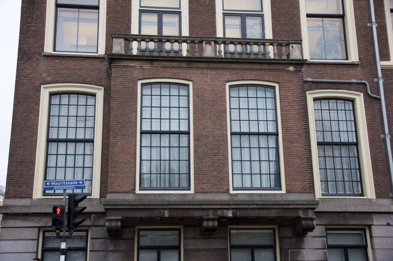Pand op de hoek van de Mauritskade, gebouwd in 1909 in eclectische stijl. Het pand bestaat uit een lage parterre, bel-etage, verdieping en zolderverdieping.; de gevel aan de Parkstraat heeft een breedte van zeven vensterassen, die aan de Mauritskade is vier vensterassen breed. De parterre is in hardsteen gebosserd en wordt afgesloten door een cordonlijst. De vensters van de bel-etage bezitten flauw getoogde, geprofileerde omlijstingen en een kleine roedenverdeling. Aan de zijde van de Mauritskade voor de bel-etage een gemetselde erker met natuurstenen balustrade, rustend op troggewelfjes en gedragen door een in hardsteen gebeeldhouwde voluutconsoles. De vensters van de zolderverdieping stoten door in het hoofdgestel van de gevel, dat een kroonlijst met klossen en modillons bezit. De gevel aan de Parkstraat heeft getoogde vensters met geblokte omlijsting, sierankers en twee gevelstenen met gebeeldhouwde omlijsting en de opschriften "anno" en "1909". Het pand bezit rijke interieurs in neo-17de- en 18de- eeuwse trant, wellicht van de fa. Mutters: trappenhuis met rijk gesneden leuningen in neo-Lodewijk XIV stijl, kamers met betimmeringen, schoorsteenmantels en plafonds in neo-renaissancestijl en neo-Lodewijk XVI.