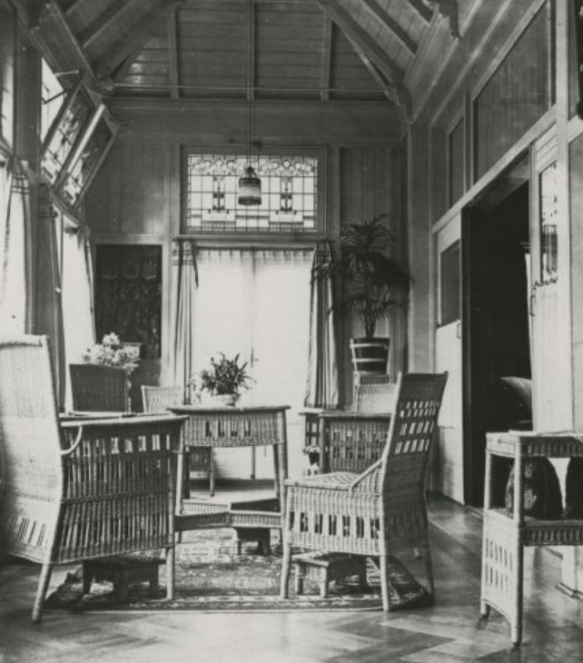 Inwendig vormt een centrale hal het middelpunt waar omheen vertrekken gegroepeerd zijn. Aan de buitenzijde is de centrale hal met trappehuis waarneembaar door de lantaarn op het dak. Het interieur is gaaf bewaard en omvat onder meerkamers met betimmeringen, stucplafonds, tegels en glas-in-lood uit de bouwtijd.