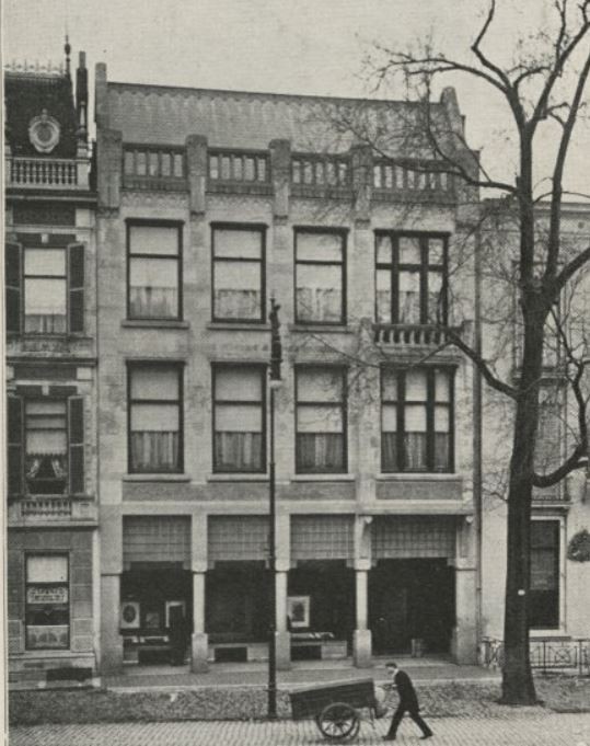Winkel-woonhuis in Art Nouveau uit 1905 gebouwd in opdracht van de kunsthandel Goupil. Het pand, dat is opgenomen in de straatwand met aaneengesloten bebouwing, is ontworpen door de architect L. Simons. De naam van de architect en het jaartal 1905 zijn aan de onderzijde van de rechter penant van de voorgevel ingehakt. Omschrijving.