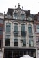 De in latere tijd totaal vernieuwde pui detoneert met de zorgvuldige gedetailleerdheid en de ritmiek van de gevel.