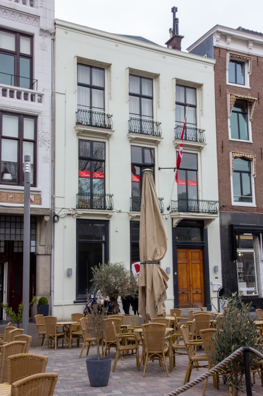 Pand met gepleisterde lijstgevel, van karakter eerste helft 19de eeuw. Het pand telt drie vensterassen - in de rechter waarvan de ingang is aangebracht - en bevat een parterre met twee verdiepingen. De vensters van de verdiepingen hebben door consoles gedragen, geprofileerde dorpels waarop gietijzeren balkonhekjes. In de vensters van de eerste verdieping achtruits, in de vensters van de tweede verdieping zesruitsstolpramen.