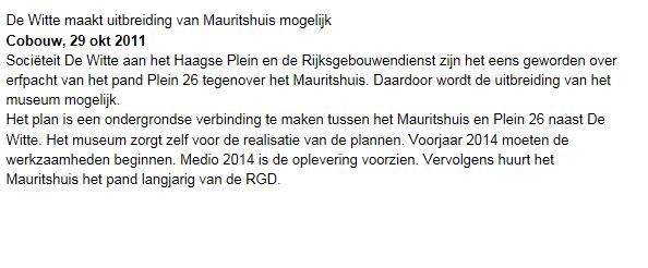 De Witte kocht het gebouw in 1820 en na die aankoop volgden er meer totdat in 1905 het gehele blok aan de noordzijde van het Plein in het bezit van de Sociëteit was.