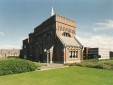 De vensters zijn in diverse vormen uitgevoerd, waaronder rondboog- en getoogde vensters, onderverdeeld door hardstenen en bakstenen stijlen, met geblokte ontlastingsbogen. De boogvelden zijn in geel/zwart/rode baksteen uitgevoerd. De toren bevat spleetlichten.