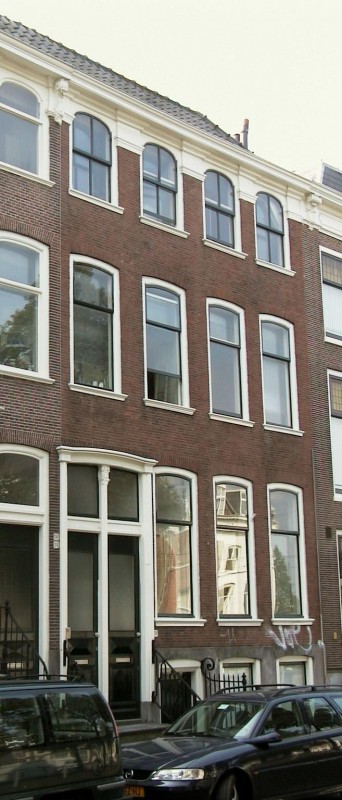 Pand met eenvoudige Lodewijk XIV gevel met doorbroken kroonlijst.