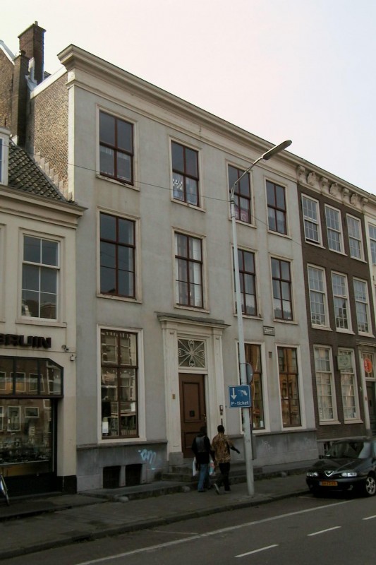 Pand met 18e eeuwse gevel met rechte kroonlijst, ingang met pilasterstelling.