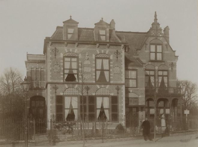 Linkerhelft van twee geschakelde herenhuizen uit 1887-1890, gebouwd door architect J.J. van Nieukerken in neo-renaissance stijl.