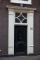 Pand met 18e eeuwse gevel met kroonlijst op gesneden consoles, deuromlijsting met pilasterstelling.