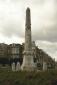 Natuurstenen obelisk, geplaatst op een verhoging in het midden van een plantsoen dat oorspronkelijk omgeven werd door een smeedijzeren sierhek.
