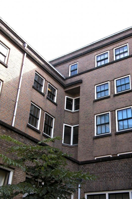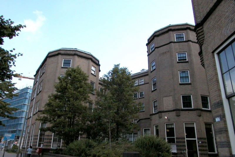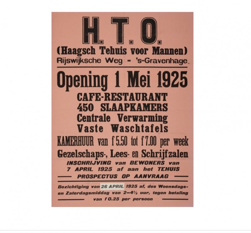 Vrijstaand gebouw uit 1923-1925, gebouwd naar rationalistisch ontwerp van architect K.P.C. de Bazel, als "Haagsch Tehuis voor Ongehuwden" (HTO) in het kader van de Woningwet in opdracht van het Departement 's-Gravenhage van de Maatschappij tot Nut van 't Algemeen. De Bazel is tijdens de bouw in 1923 overleden waarna de voltooiing is geschied onder leiding van de architecten A. Broese van Groenou en S. de Clerq.