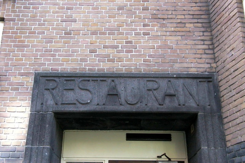 Aan de zijde van de Rijswijkseweg heeft het gebouw een symmetrisch front met haakse zijvleugels en een aan het voorplein hiertussen liggende middenvleugel met polygonale sluiting. Aan dit voorplein is de oorspronkelijke ingang van het restaurant gelegen. Ter hoogte van de terugspringende tweede bouwlaag zijn langs de zijvleugels brede bordessen aangebracht. Het voorplein wordt van de straat gescheiden door een balustrade, bestaande uit baksteen en Muschelkalksteen.