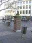 Stadspomp op vierkante plattegrond, opgemetseld uit baksteen met natuurstenen elementen.