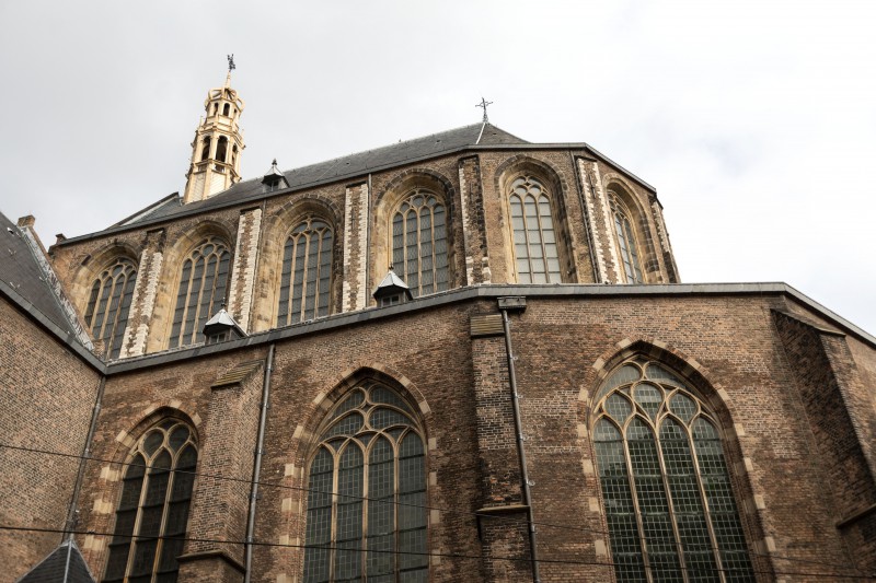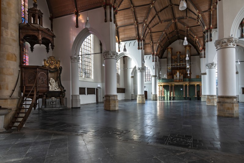 Laat-gotische kerk, bestaande uit een zeszijdige toren, schip met dwarse zijkapellen en een hoog basilicaal koor. Preekstoel van 1550 met rijk snijwerk, vroeg renaissance graftombe voor Gerrit van Assendelft en zijn vrouw, grafmonument voor Jacob van Wassenaar-Obdam uit 1667 door B. Eggers, monument voor Philips van Hessen-Phlipsthal, een aantal epitafen en zerken, 34 panelen met wapens en namen van ridders van het Gulden Vlies, wapenborden, gebrandschilderde glazen.