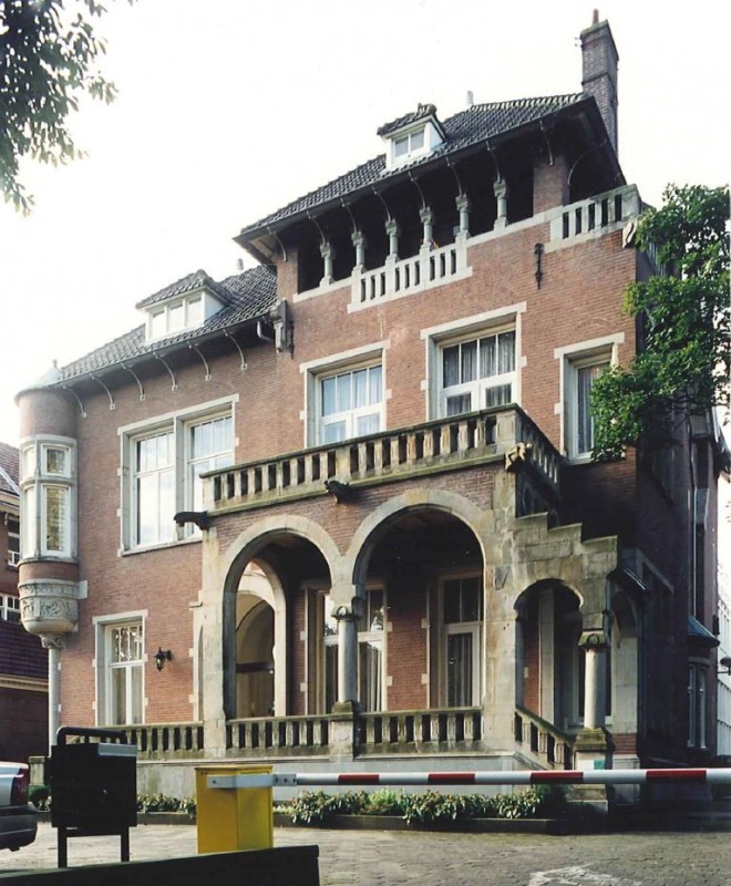 Pand op rechthoekige plattegrond bestaande uit begane grond en verdieping onder een samengestelde kap, twee assen breed. De villa is opgebouwd uit in hoogte varierende bouwvolumen, afgesloten door overstekende kappen. De gevels zijn van baksteen met vele in natuursteen uitgevoerde onderdelen. De goten rusten op dunne gebogen ijzeren consoles. De rechteras is licht risalerend uitgebouwd en wordt afgesloten door een lage loggia met een natuurstenen arcade, waarboven een overstekende kap. In het oog springend is het monumentale bordes met stenen troggewelf, omgeven door natuurstenen rondbogen. Twee trappen leiden aan weerszijden naar het bordes. Hierboven bevindt zich een breed balkon, afgesloten door een natuurstenen hek. Op de hoeken en in het midden zijn waterspuwers geplaatst, alsmede een op de hoek van de loggia. Links van het bordes bevindt zich de rondboogvormige ingang. Aan de linkerhoek van de voorgevel is op de verdieping een driekwart ronde erker uitgebouwd met gebeeldhouwde natuurstenen onderzijde, die op een halfzuil rust. De erker is voorzien van langwerpige glas-in-lood vensters en wordt afgesloten door een rond tentdak met piron. Linksachter is een tweede ingang, gesitueerd in een klein portiek met twee rondbogen, onder een lessenaarsdak. De vensters bezitten bovenlichten deels met verticale roeden, afgesloten door een natuurstenen bovendorpel; in de linkerzijgevel bevinden zich in het middelste bouwlichaam drie drielichtvensters boven elkaar, waarvan de onderste twee trapsgewijs in de gevel geplaatst zijn. Onder de daklijst van dit deel is een reeks kleine rechthoekige vensters geplaatst. Het middendeel van de rechtergevel is opgetrokken tot een topgevel waarin een driezijdig uitgebouwde houten erker en een venster, verenigd onder natuurstenen bogen. Op de begane grond bevindt zich in het midden een halfrond uitgebouwde erker met glas-in-lood. In het interieur zijn een eikehouten trap in het trappenhuis met houten lambrizeringen en paneeldeuren, en een marmeren vloer bewaard gebleven.