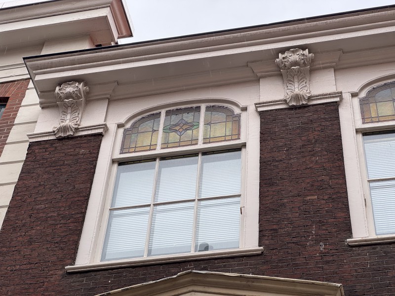 Pand met gevel uit de tweede helft van de 18e eeuw met doorbroken kroonlijst op gesneden consoles.