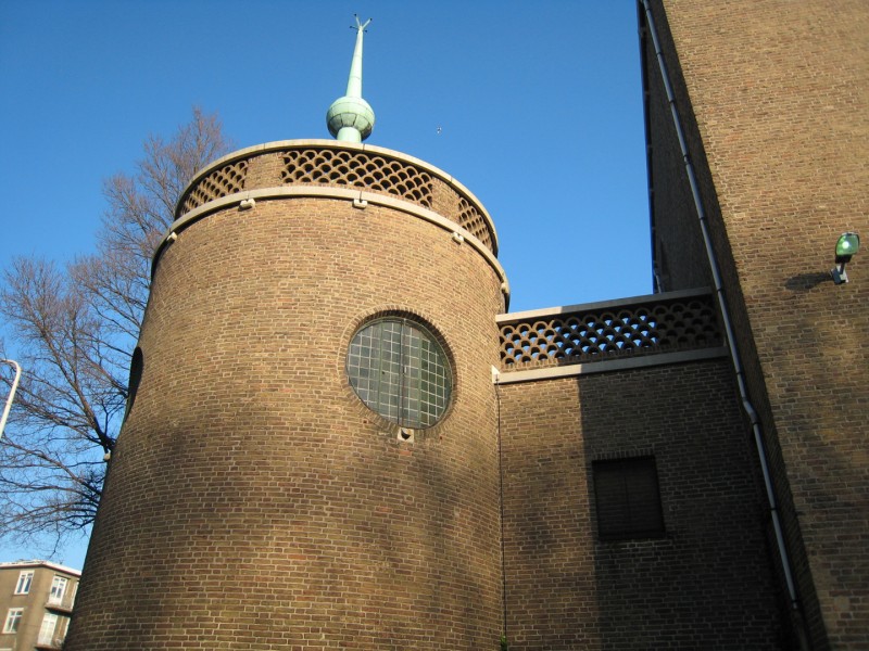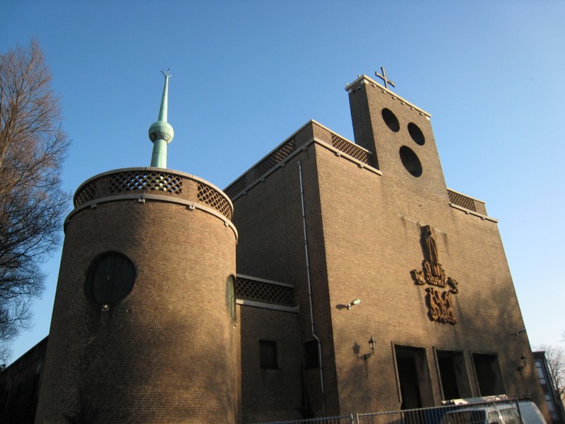 Voormalig rooms-katholieke kerk Onze Lieve Vrouwe van Fatima met twee scholen, gebouwd tussen 1947-1954 door architect N.F.A. Molenaar en zijn medewerker P.A.N. Sips.