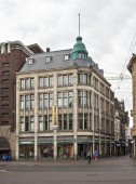 Voormalig modemagazijn uit 1915 op de hoek van de Spuistraat en het Spui in de historiserende stijl van de "Um 1800- Beweging". Het ontwerp onder de naam "Magazijn Nederland" is van de architecten L.Simons en Th. van Braningen.
