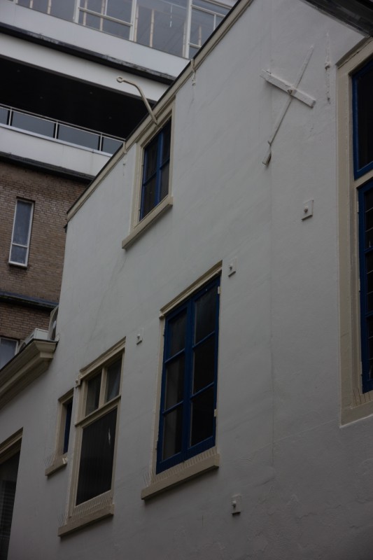 De gevel aan de Spuistraat is rond 1905 opgetrokken en bestaat uit drie traveeën, waarvan de hoek met de Voldersgracht is afgeschuind. De Spuistraat is al sinds de late middeleeuwen een straat waar bedrijvigheid en handel waren geconcentreerd. Rond 1850 doet het winkelconcept zoals wij dat nu kennen haar intrede en worden veel woonhuis- en bedrijfspuien in de bestaande bebouwing vervangen door winkelpuien. Zo ook bij Spuistraat 43. De voortschrijdende cityvorming van de binnenstad en daarmee het alsmaar belangrijker worden van de winkelfunctie voor de Spuistraat zorgt ervoor dat vanaf 1875 het merendeel van de oude panden wordt gesloopt. De nieuwe winkel-woonpanden laten de rijke schakering zien van de snel opvolgende architectuurstijlen vanaf 1875 tot aan het Interbellum.