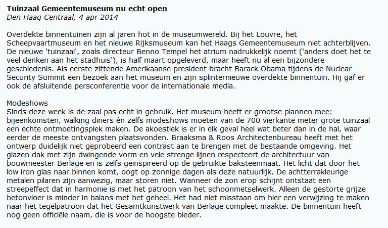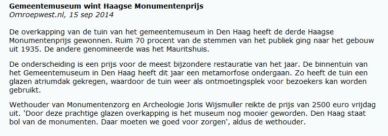Museumgebouw als onderdeel van het complex Haags Gemeentemuseum van architectuurhistorische waarde als voorbeeld van een rationele, sterk door Frank Lloyd Wright beinvloedde vormgeving; tevens van belang binnen de ontwikkeling van het oeuvre van Berlage. Cultuurhistorisch en typologisch waardevol als voorbeeld van museumarchitectuur, die in zijn tijd op vooruitstrevende wijze voldeed aan de eisen die gesteld werden aan het tentoonstellen van kunst. Vanwege de markante situering langs de Stadhouderslaan is het complex van stedebouwkundige waarde.